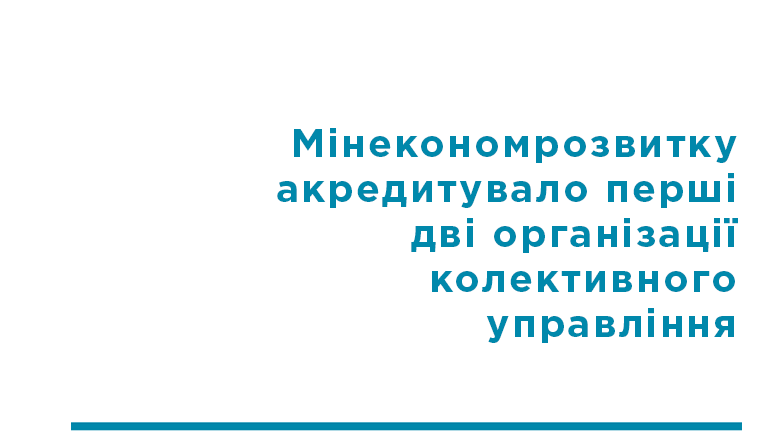 Комісія з акредитації організації колективного управління, яка складається з представників міжнародних організацій у сфері авторського права і суміжних прав, громадських об’єднань, що представляють правовласників і користувачів, та посадових осіб Мінекономрозвитку, Мінкульту, Нацради з питань телебачення і радіомовлення, за результатами відкритого конкурсу відібрала перші дві організації, які здійснюватимуть збір винагороди у відповідних сферах колективного управління.